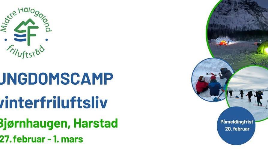 Bli med på Ungdomscamp i vinterferien Friluftsrådet inviterer til 3-dagers ungdomscamp i vinterferien med tema vinterfriluftsliv 27. februar til 1. mars. PÅMELDINGSFRIST 20. FEBRUAR. Flott ...