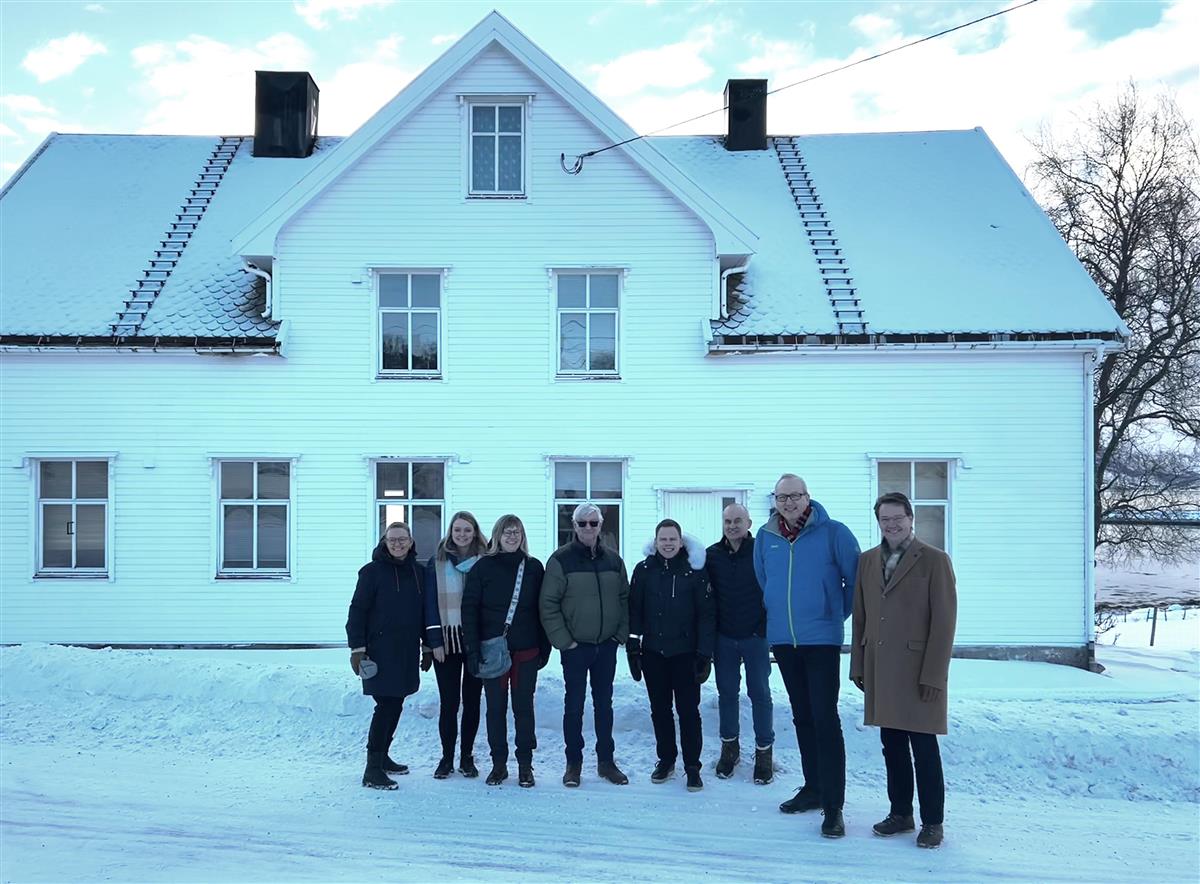 På bildet ser vi fra venstre daglig leder i Den Norske Kirke Eiendom AS Inger Kari Stensrud, kommunedirektør i Evenes kommune Elisabet Norlund, kirkeverge i Evenes kirkelige fellesråd Elin-Mari Nikolaisen, leder i Evenes kirkeforening Øystein Martinussen, varaordfører i Evenes kommune Skjalg Hamnes, leder i Evenes Fellesråd og menighetsråd Alf Kolsing, ordfører i Evenes kommune Terje Bartholsen og eiendomssjef i Den Norske Kirke Eiendom AS Trond Chr. Hubred. Prestegårdsinspektør i Den Norske Kirke Eiendom AS for Nord- og Sør Hålogaland Markus Krøger var også med på møte (tok bildet).