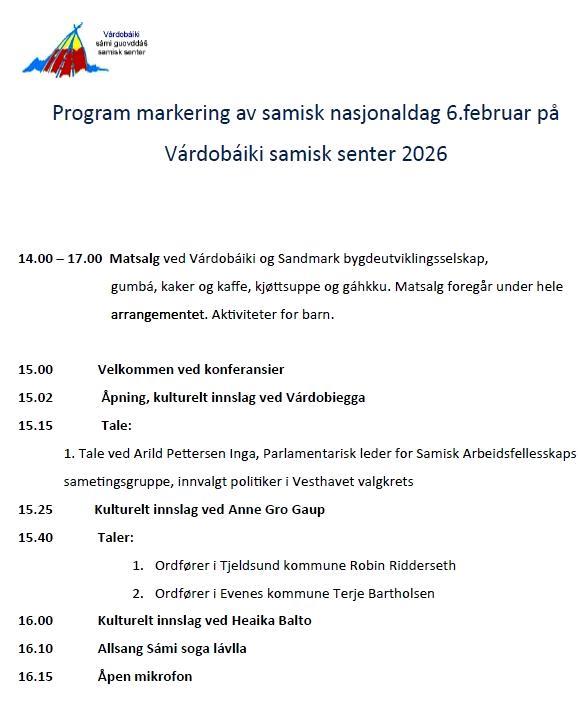 Evenes kommune, Tjeldsund kommune og Várdobáiki samisk senter samarbeider om samisk måned og samisk nasjonaldag. Programmet for Samisk måned og Samisk nasjonaldag er på plass. Mye som skjer i kommunene.